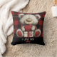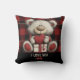 Red Plaid Bear I Love You Custom Name Monogram Throw Pillow