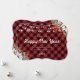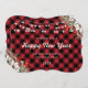 Elegant red buffalo plaid New Year card featuring a watercolor painting of poinsettia, holly and red berries along with string lights on a red and black buffalo plaid background. Easily personalize online.