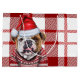 This festive Christmas gift bag features a charming Bulldog dressed for the holidays. The dog is sporting a red Santa hat and a cozy winter sweater. The background is a cheerful red plaid pattern, adding to the holiday spirit. The bag has white handles, making it easy to carry and perfect for gifting. This unique and adorable design is sure to bring smiles to everyone who sees it.