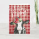 Send a smile this holiday season with this cute baby cow Christmas card. Design features a watercolor black and white calf, red plaid background and winter flowers with holly.