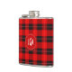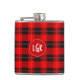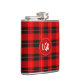 Red Plaid Geometric Pattern Monogram White Accents Hip Flask