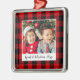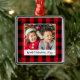 This fun ornament features red and black buffalo check plaid, a photo template, and text template for personalization!
