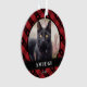Pet ornament for Christmas with your pet's photo inside a red plaid frame with paw prints. Add your pet's name and the year.