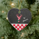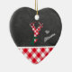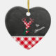 Red Plaid Reindeer Chalkboard Family Name Ceramic Ornament