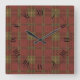 Red Plaid Square Roman Numerals Clock