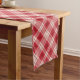 A beautiful table runner with a plaid pattern using red hues . Perfect for the Holidays or any other day of the year .