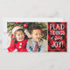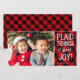 These fun photo holiday cards feature red and black plaid and stylish typography, reading, "Plaid tidings of great joy!"