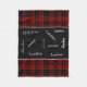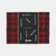 A bold red & black plaid print with fun fonts and name personalization in the centre. Would make a great gift!