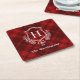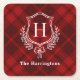 Red Plaid Winter Monogram Crest Initial Square Paper Coaster