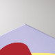 A silhouette of a red plant stem with a yellow sun on a light lavender colored background.