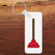 Red plunger custom keychain. Rectangular key chain with plunger symbol for home, public WC, loo, bathroom, outhouse, wash room, latrine, portable toilet etc. Custom background colour. Handy for restaurant, hotel, office, cafe, bar, motel, pool, gas station, venue and other places.