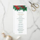 Here's a beautiful wedding program card that is perfect for weddings during the Holiday Season. It features Christmas greenery and red poinsettia blossoms as a top border, with your custom text in gold and dark green below it. Everything is placed on a crisp white background. The back of the card has the same floral border at the top, with two more text fields for you to customize.
