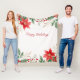 Red Poinsettia Christmas Holiday Fleece Blanket