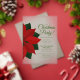 This acrylic Christmas Party invitation features a red poinsettia half on the card on a frosted background with dark green text. This invitation also features text template fields aligned to the right to easily personalize the invite with your own details.
