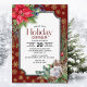 Red Poinsettia Gold Snowflakes Holiday Dinner Invitation