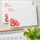 Envelopes with your custom return address on the front in red script and lined with a bright red holiday pattern of poinsettia flowers.