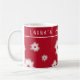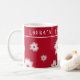 A personalized Christmas mug, with white poinsettias and a Halleberry red background. It’s both fun and elegant, and makes for a practical gift.!