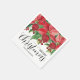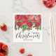 Personalized paper napkins feature modern, elegant red poinsettias with Merry Christmas and your name in chic lettering. MATCHING items in our collection.