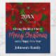 Red poinsettias wine label with Giving Holiday Cheer - Merry Christmas and Happy New Year - Personalize with your family name and year. You can change the background colour, or the messages to say you own holiday greeting. Red and green colour, with a simple and elegant look. Perfect for Christmas hostess gifts for the next Holiday party you are going to or to hand out to neighbours this holiday season.