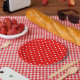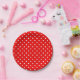 Red polka dot throw pillow paper plate