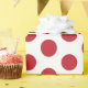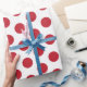 Red polka dots cover a white background. Paper is great for Christmas time or any time!