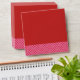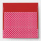 Big red dots on a pink background wrap around a red envelope. There are also big red dots on the inside.