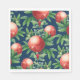 This is a pattern of vintage watercolor red pomegranate fruits with green leaves on a navy blue background.