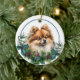 Red Pomeranian Dog Evergreen Berry Wreath Ceramic Ornament