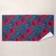 Red poppies and blue cornflowers on blue bath towel set