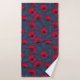 Red poppies and ladybugs on dark blue bath towel set