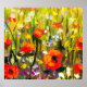 Red poppies flower field - Original handmade abstract oil painting bright flowers made palette knife. Yellow, blue, purple abstract flowers. Macro impasto painting.