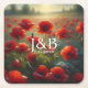 Red Poppies Floral Wedding Personalized Square Paper Coaster