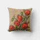 Realistic looking red poppies on burlap background, from original artwork. Red flowers.