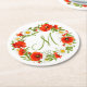 Red Poppies White Yellow Daisies Flower Wreath Round Paper Coaster