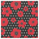 Bold red Poppy pattern on a black and white polka dot background. Stylish, pretty and contemporary fabric design.