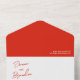 Red poppy floral wedding invitation all in one template with a digital QR code to scan and RSVP online via your website. Design with bright shades of red and watercolor flowers on an off-white background. The back of the tearable card can be edited with your return address so you can add a postal stamp and mail it without an envelope. Personalize it with up to 3 menu options and dietary restrictions. The foldable top has your address and the centre is editable with your guest's address (add it online, add a pre-made label, or handwrite it).