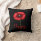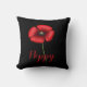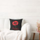 A red poppy on a black throw pillow with space for your name. It's double sided with more poppies on the reverse