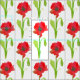 A cheerful floral fabric with red poppy flowers painted with watercolor with bright green stem, leaves, and pod on a white background. You can change the background colour to fit your needs.