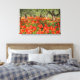 Canvas landscape print of a field with red poppy flowers under old olive trees in an orchard in the countryside of Italy in summer.