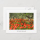 Red poppy flowers under old olive trees postcard