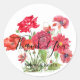 red poppy rose dahlia ranunculus bouquet classic round sticker
