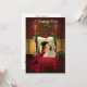 Red Christmas present box with a golden retriever puppy dog inside Christmas party invitations.