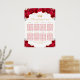 This elegant and glamourous Quinceañera table seating chart features a gold crown and beautiful red floral arrangements with gold confetti. The text combines handwritten script and modern sans serif fonts for a classy and sophisticated look.
