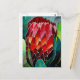 with original art design from watercolour painting by Sacha Grossel of large, red Protea flower, naïve to South Africa and Australia. Bright and colourful design with red, orange and green.
