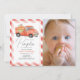 This cute vintage, and rustic "little pumpkin" 1st/first birthday photo invitation features a white background with red gingham checks and a red truck filled with pumpkins and flowers. The reverse side features a white background with light grey polka dot patterns. Personalize for your needs. You can find more matching products at my store.