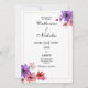 This beautiful and colourful invitation card is perfect for a spring or summer wedding. The design features a beautiful flower pattern with a large purple flower and some leaves.
