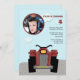 A sporty, juvenile invitation featuring an all terrain vehicle and a round photo window for the driver's photo. The card is easy to customize with your wording, font, font colour and choice of six paper types.