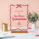 Clean, modern, and effortlessly stylish, these Quinceañera Table Signs feature bold red typography, a translucent background and a hand-drawn bow and border for a trendy coquette look. It’s perfect for a fashion-forward guest of honour who values simplicity.