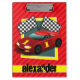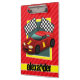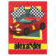 Cool, colourful kid's race car, red, yellow, chequered flag, auto racing design on Scarlet Red Stripes pattern. Perfect gift for baby, toddler, kids, children, teens, or adults! Personalized the design template by adding a child's name or custom text. Visit our store, Birthday Party House, for more great customizable boy products!