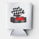 Red Race Car with Chequered Flag Can Cooler